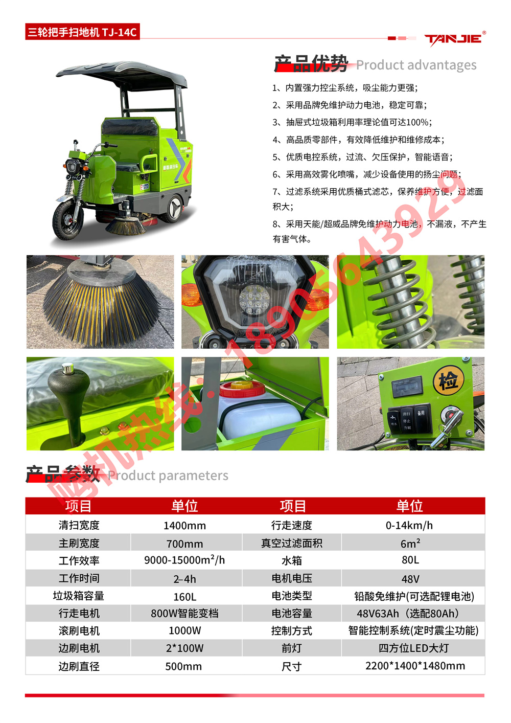 太原坦洁三轮把式扫地机TJ-14C