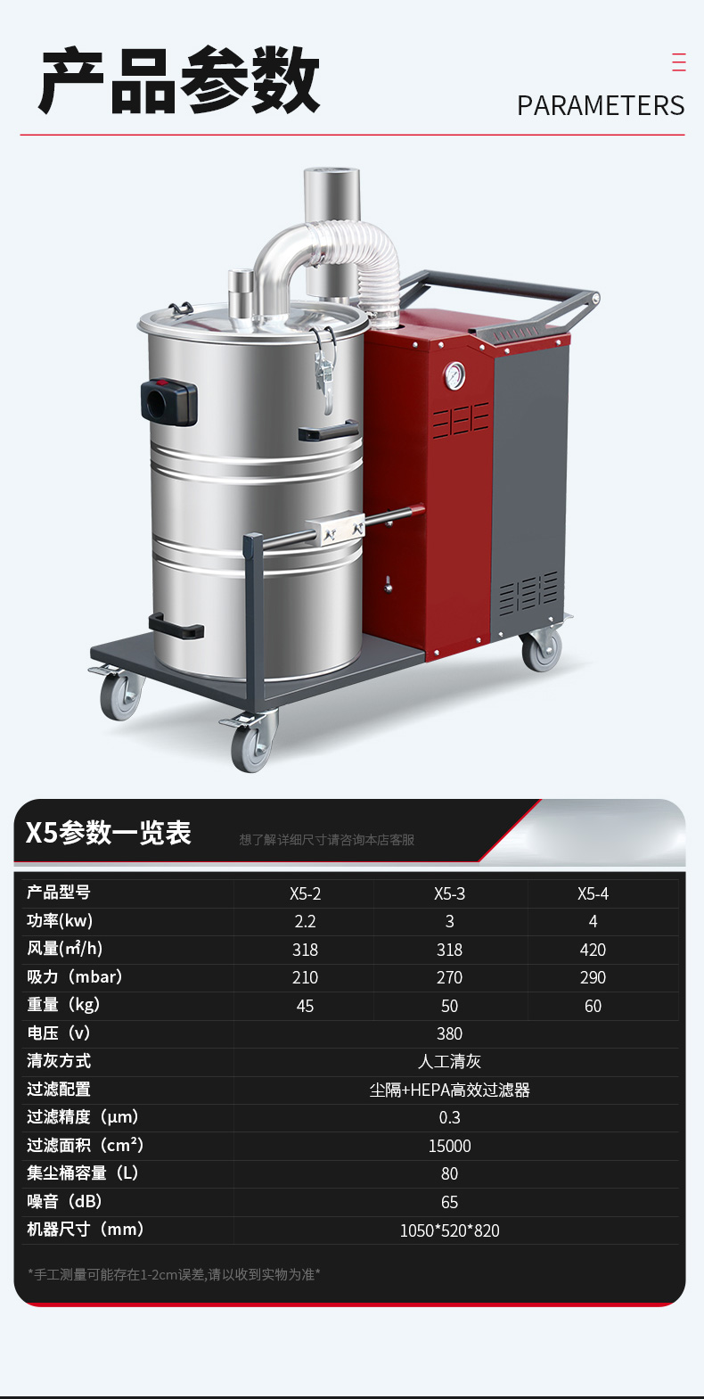 太原坦洁380V双桶不锈钢工业吸尘器X7系列