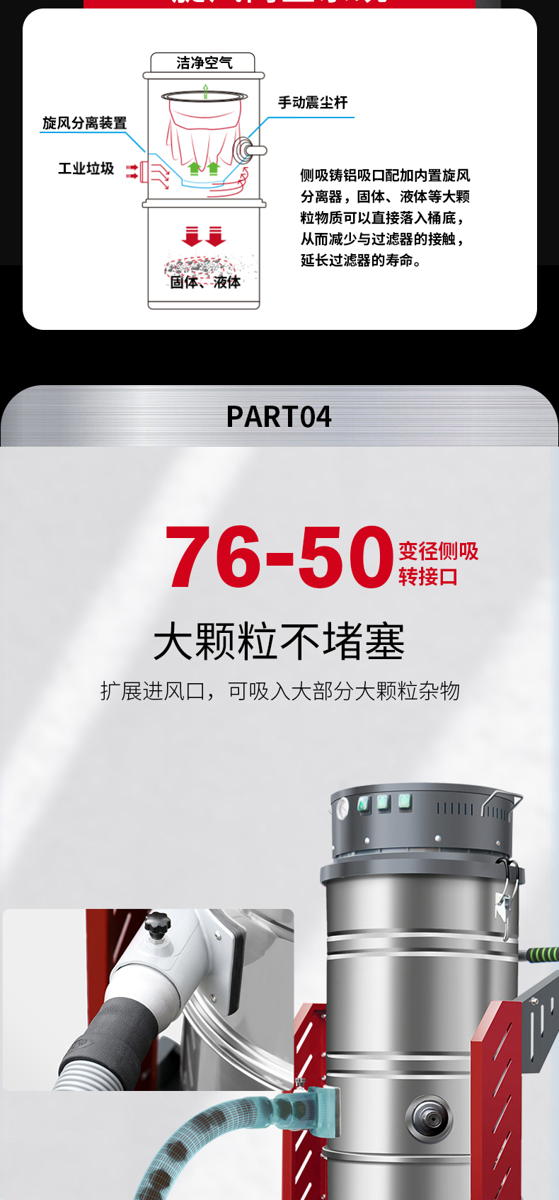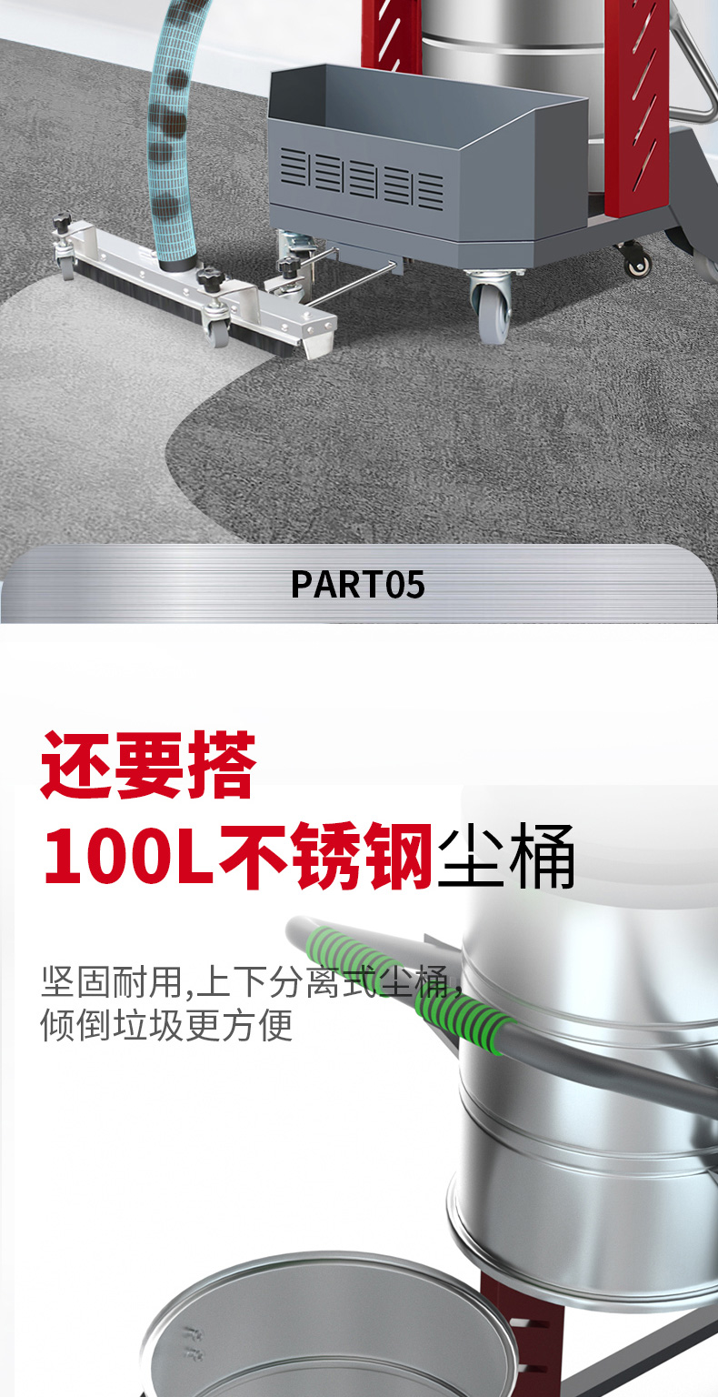 太原坦洁380V双桶不锈钢工业吸尘器X7系列