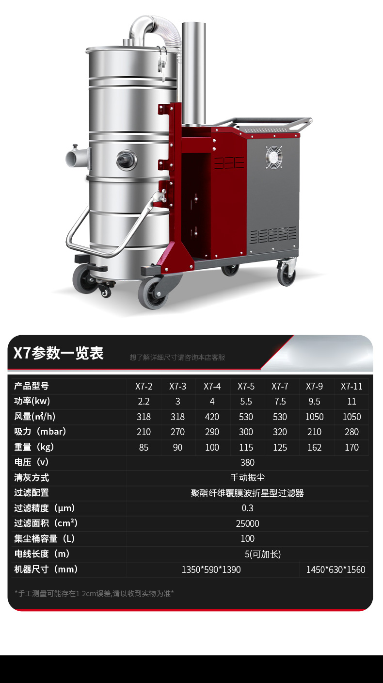 太原坦洁380V双桶不锈钢工业吸尘器X7系列